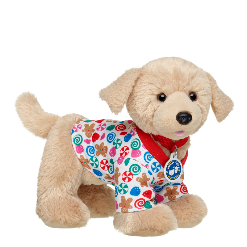 Your furry friend will look super sweet all season long when dressed in this festive sweater! This stuffed animal sweater features a fun gingerbread and candy print pattern and is specially made for four-legged furry friends.