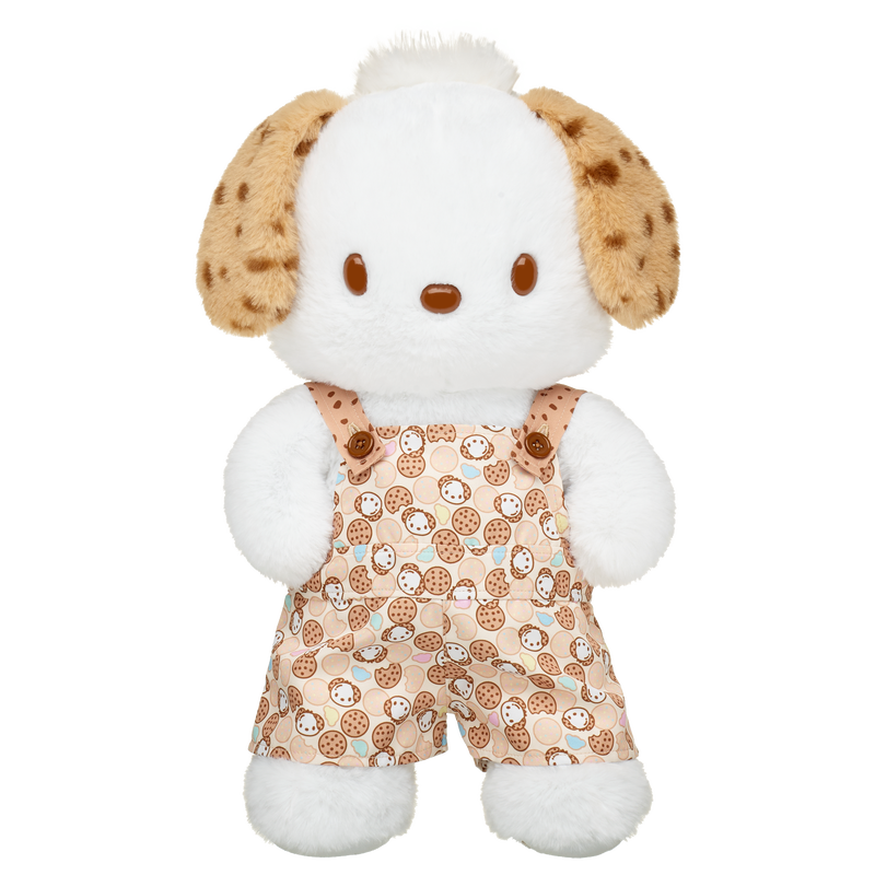 这款棕色工装裤全身印有巧克力曲奇饼干图案,为您的 Pochacco™ 毛绒玩具增添最甜美的风格。